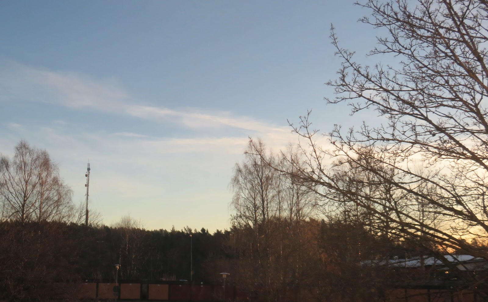 En skata for upp på en av lyktstolparna .. och en kråka ser man hur den far iväg