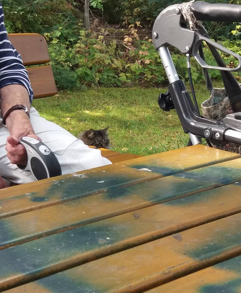 När jag cyklade iväg så höll jag på att krossa denna larv ..
